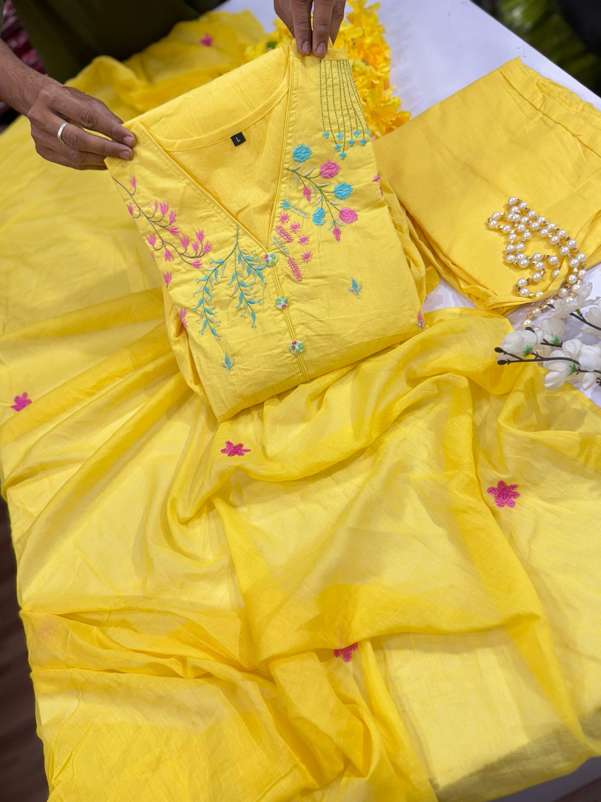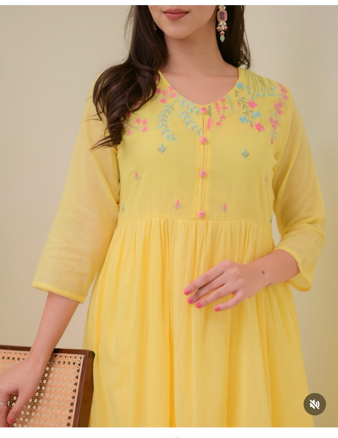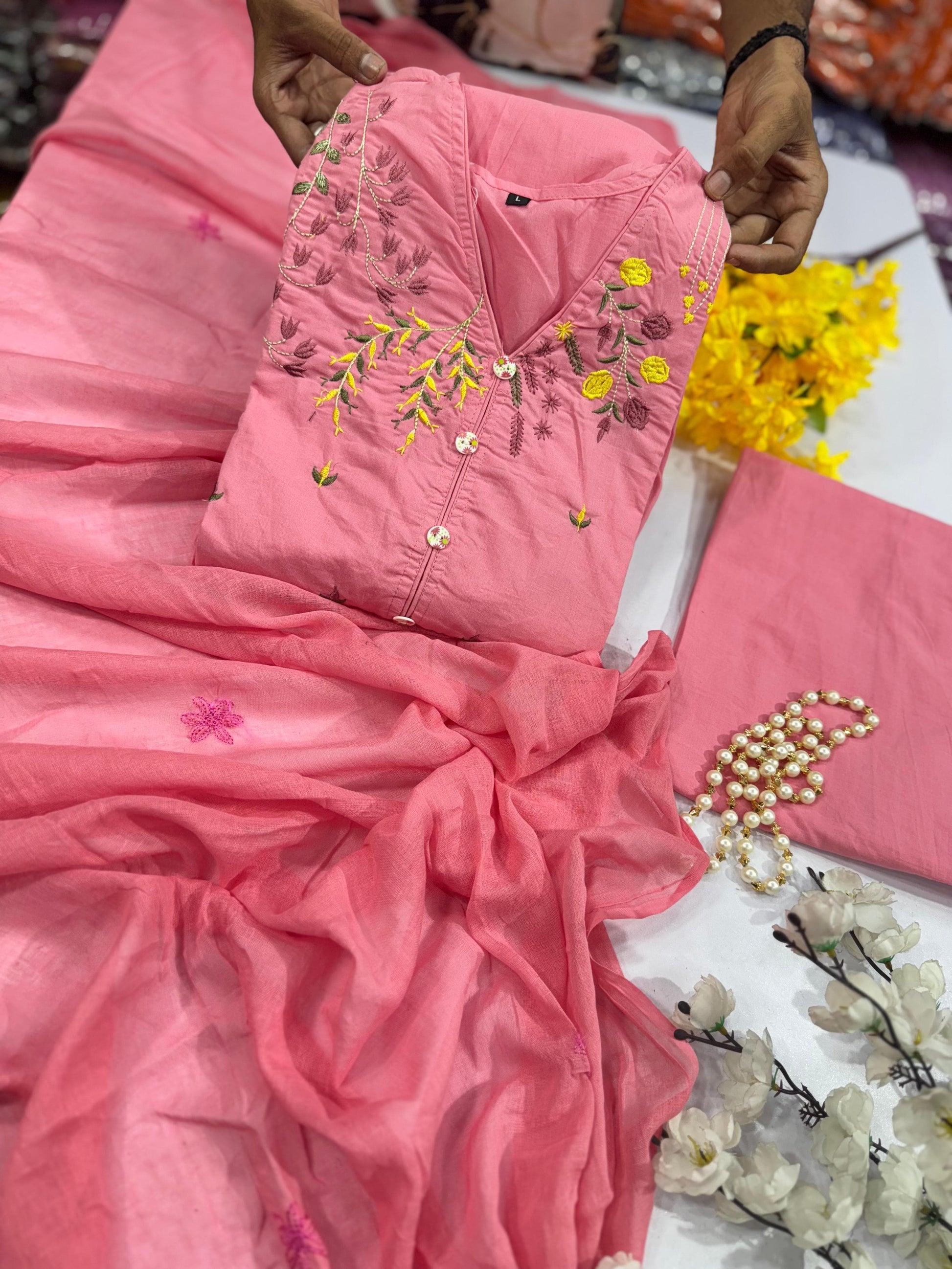 Mul cotton embroided kurti ,pant with dupatta set for women