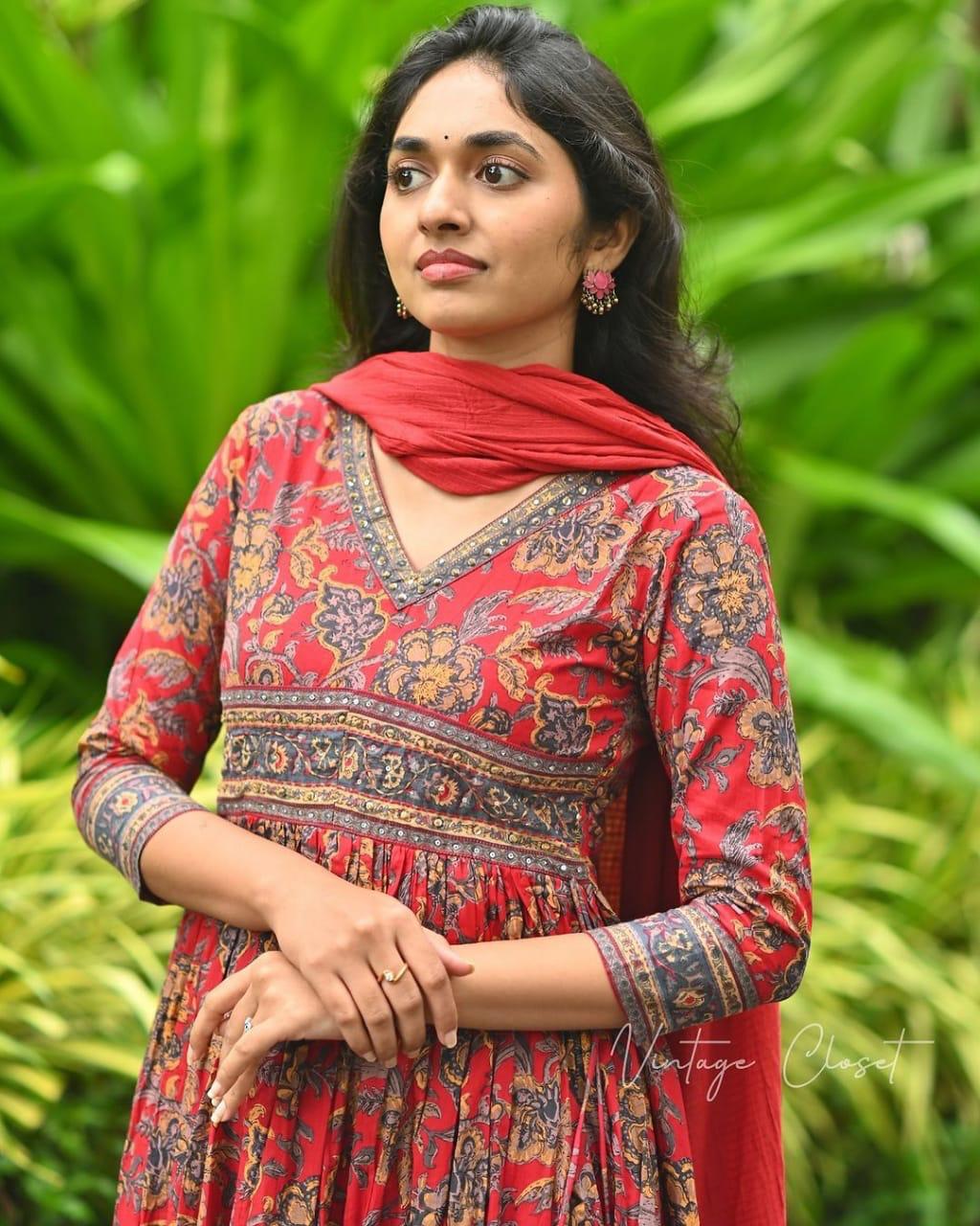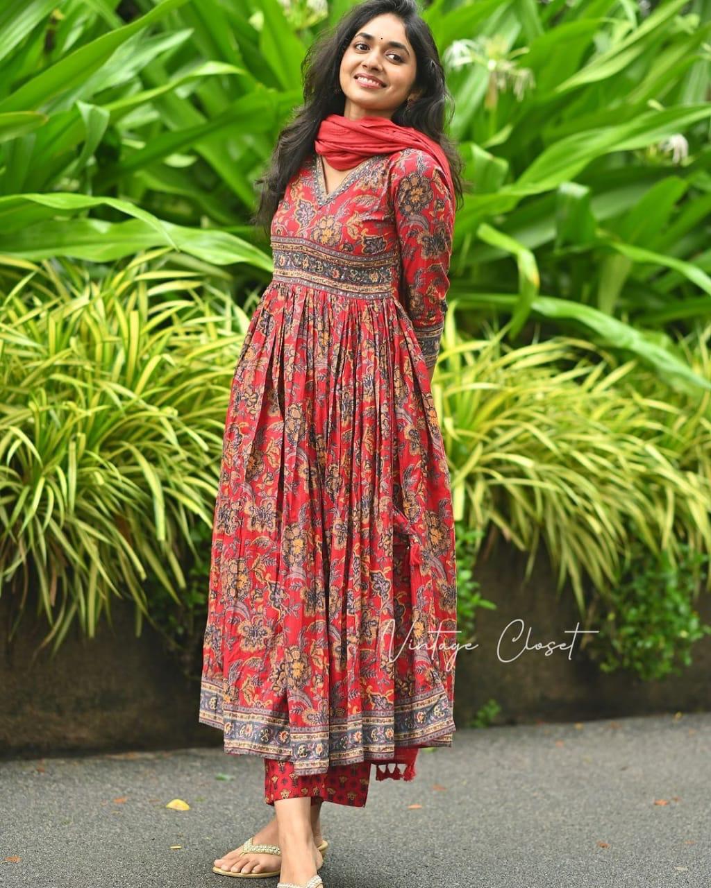 PRINTED COTTON FULL FLAIRED ANARKALI KURTI ,PANT WITH DUPATTA SET FOR WOMEN