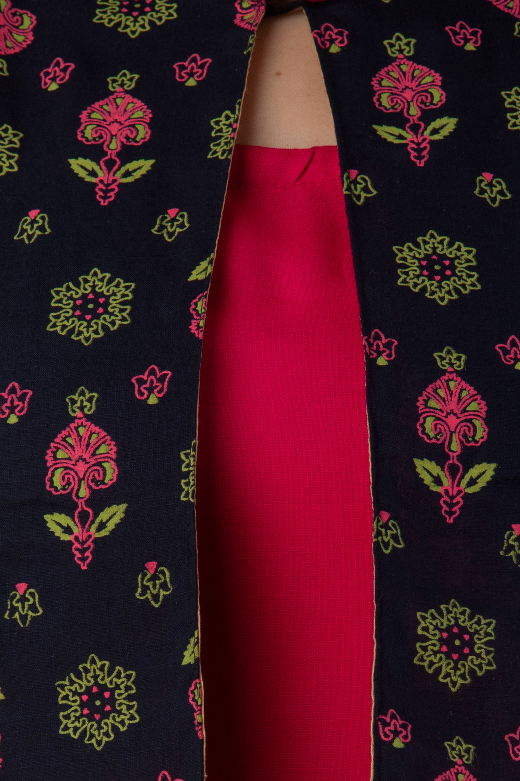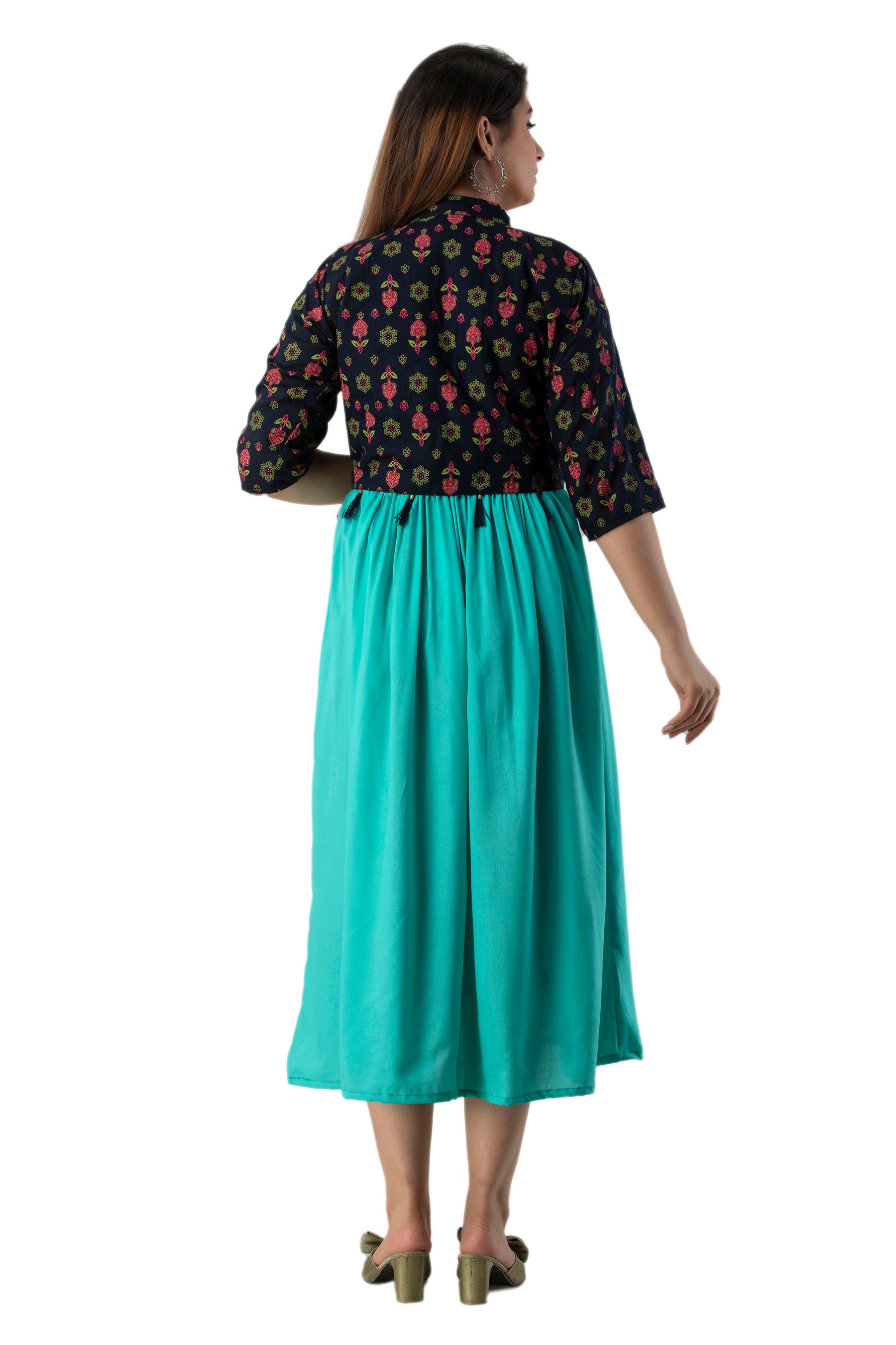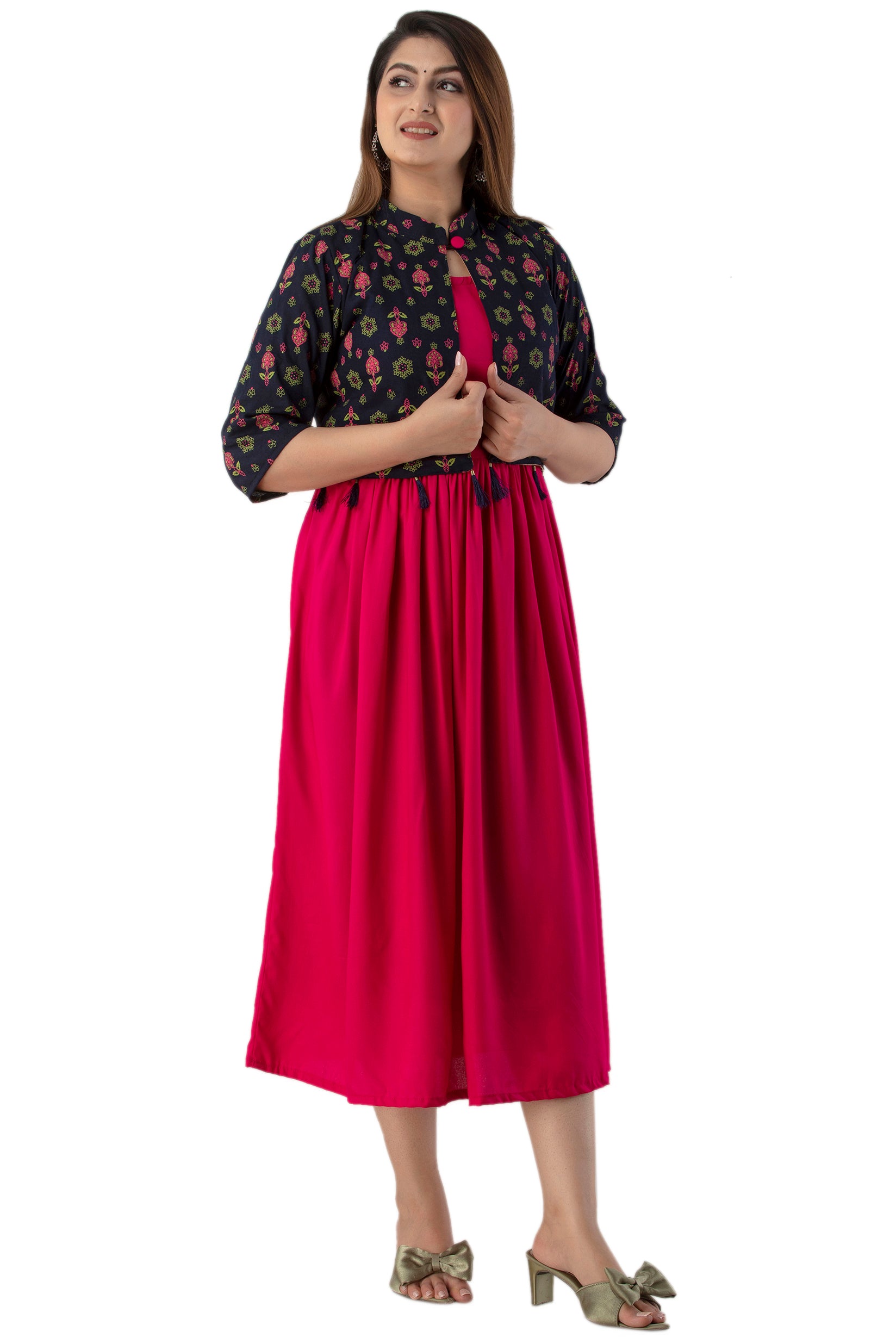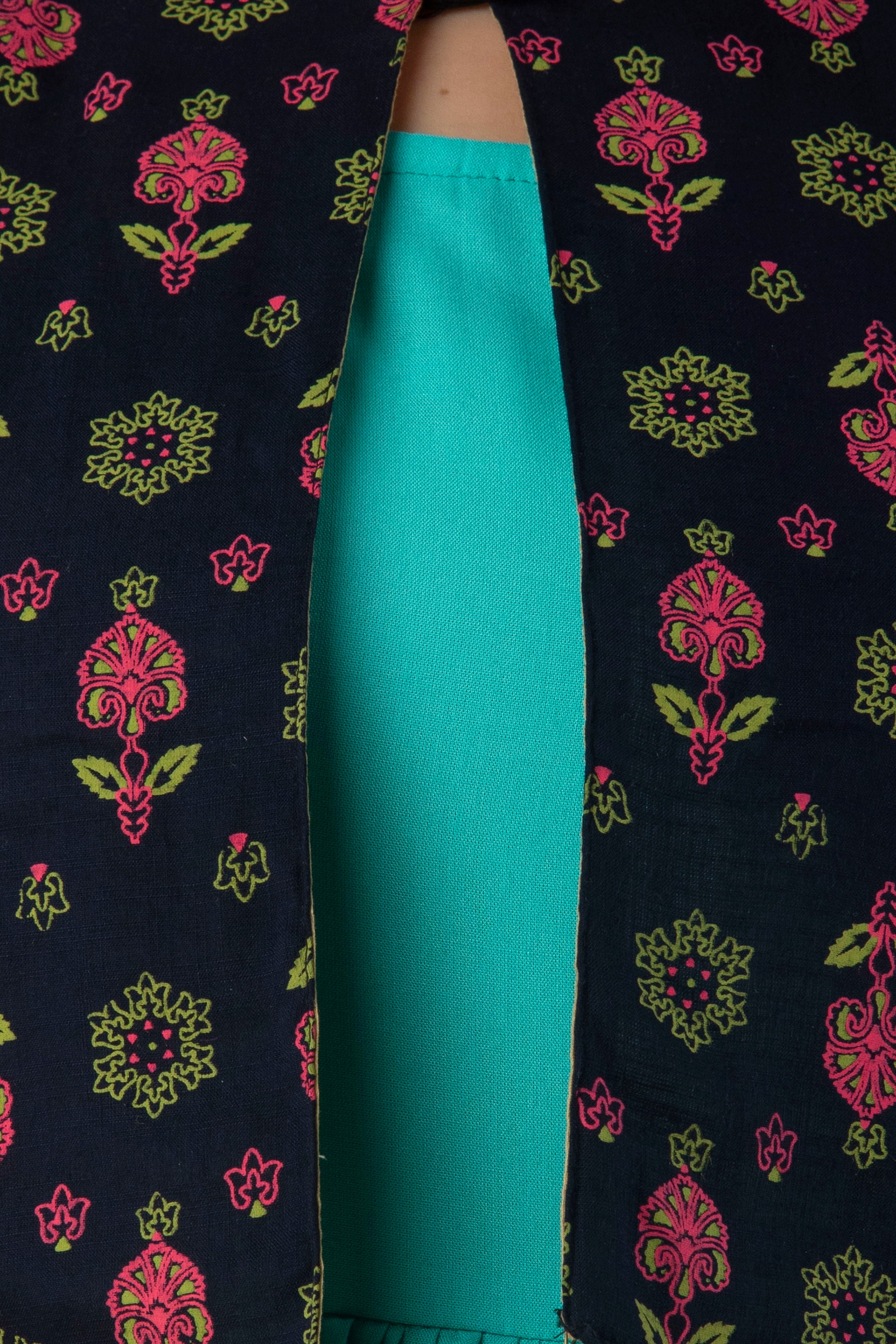 Rayon Sleeve Less Kurti With Printed Jacket