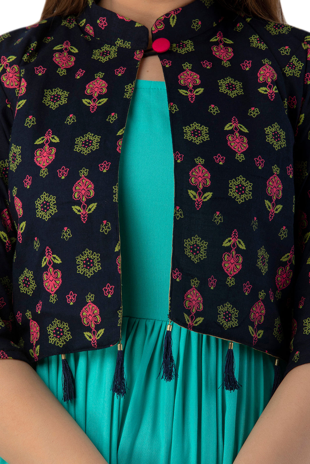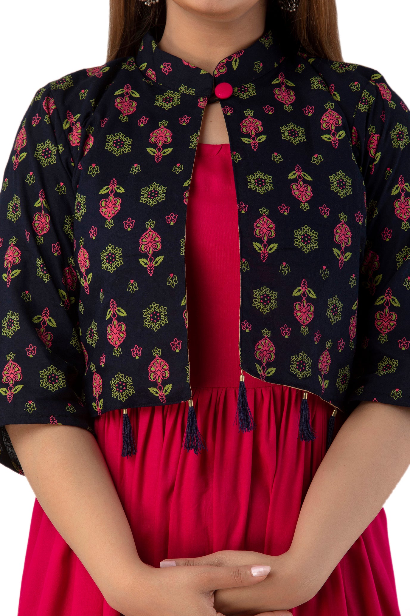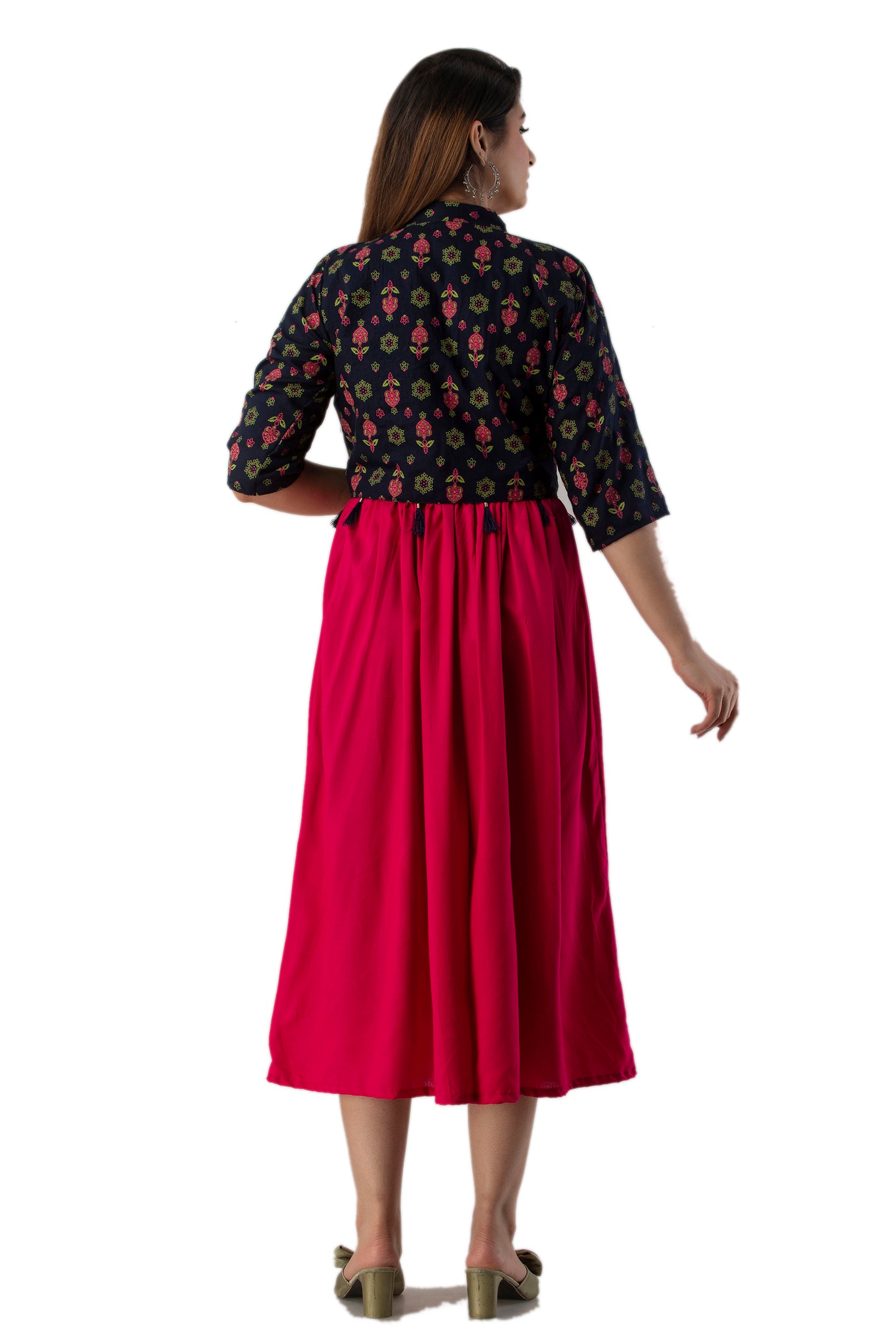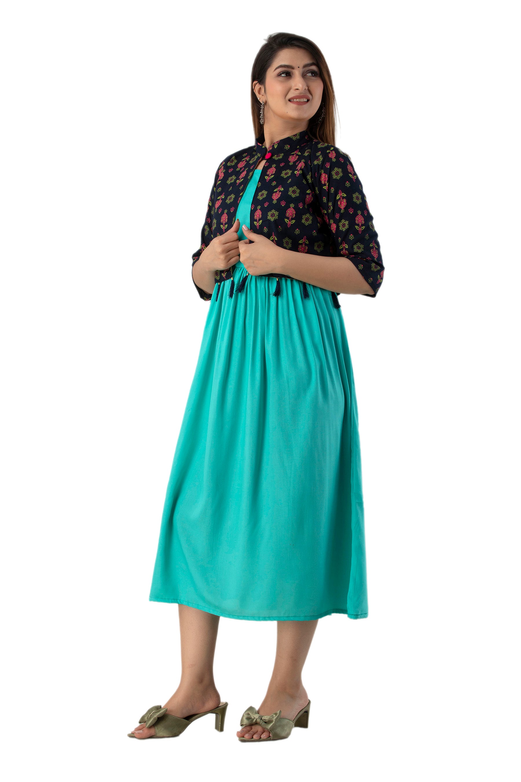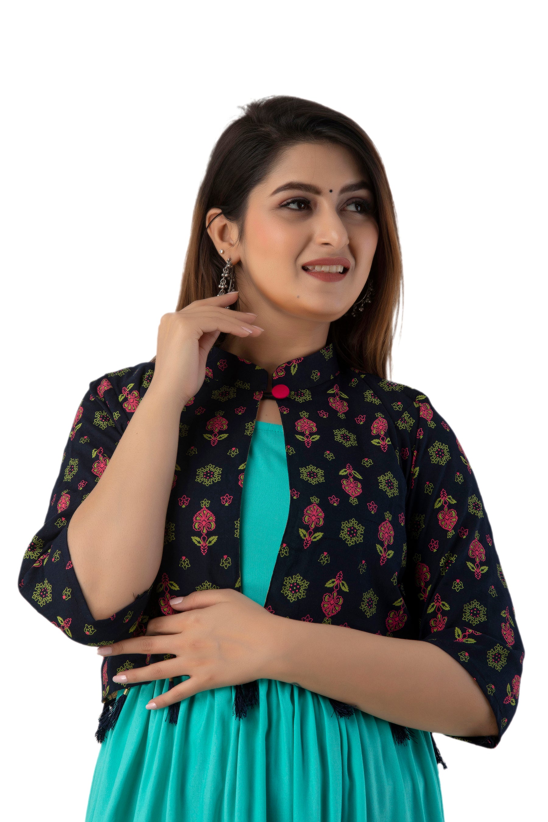 Rayon Sleeve Less Kurti With Printed Jacket